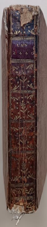 Londres, [sans nom], 1776. In-8 de VIII-382-[2] pages, demi-basane brune à coins, dos à nerfs (manque de peau en haut du dos), non rogné. Singulière reliure qui a la chasse inférieure qui mesure 2 centimètres, pour 5 millimètres pour la chasse supérieure.