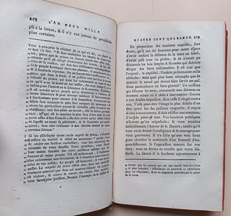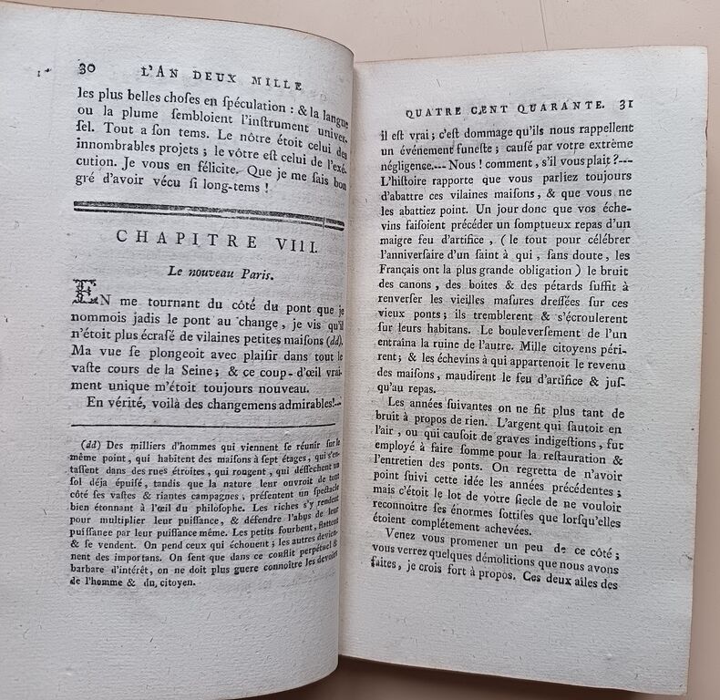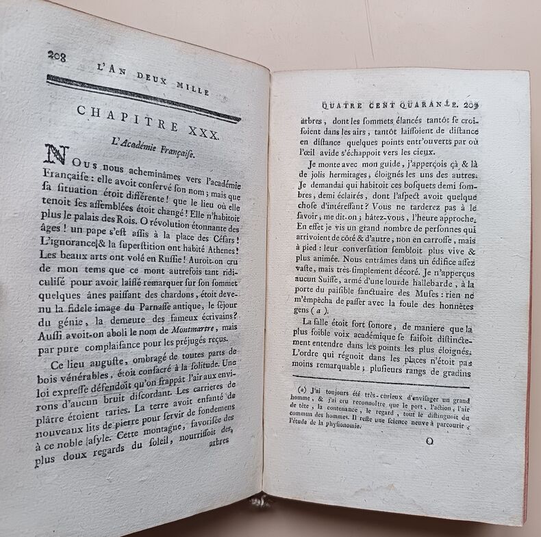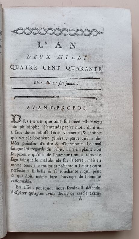 Le narrateur s'endort et se réveille 700 ans plus tard. Commence alors la narration de ce qu'il découvre, et permet ainsi à Mercier une critique de la société de son temps, mais également de projeter dans le futur les pensées et ébauches de idées des Lumières. D'aucuns le considèrent comme le premier roman d'anticipation, "dont le retentissement s'étendit à toute l'Europe" (Versin, Encyclopédie de l'Utopie).
