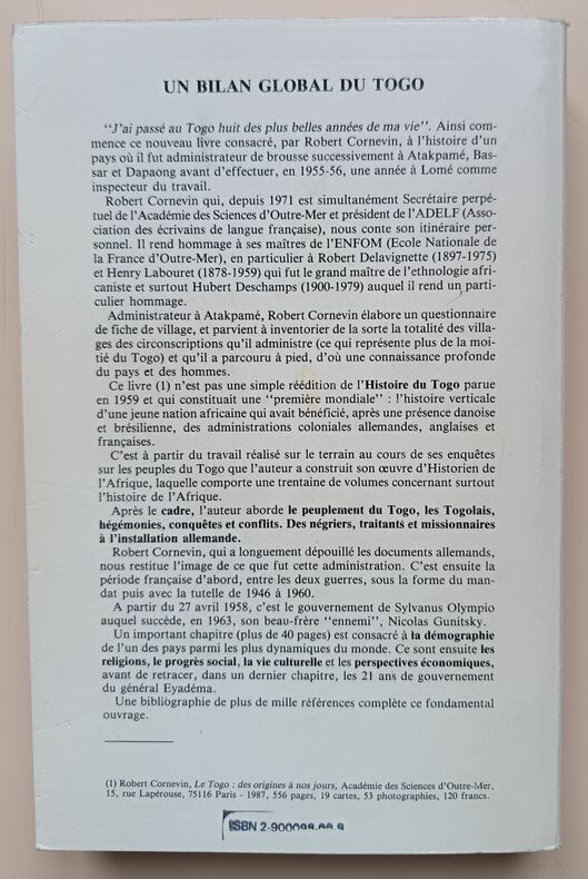 Ed. Académie des Sciences d'Outre-Mer, 1988, 556pp, In-8. Bon état. Couverture souple illustrée éditeur. (Traces d'usure, plat légèrement frotté, coin corné). Intérieur impeccable. Dédicace de l'auteur en page de titre, sinon, sans annotations ni phrases/illustrations soulignées. Voir photos.