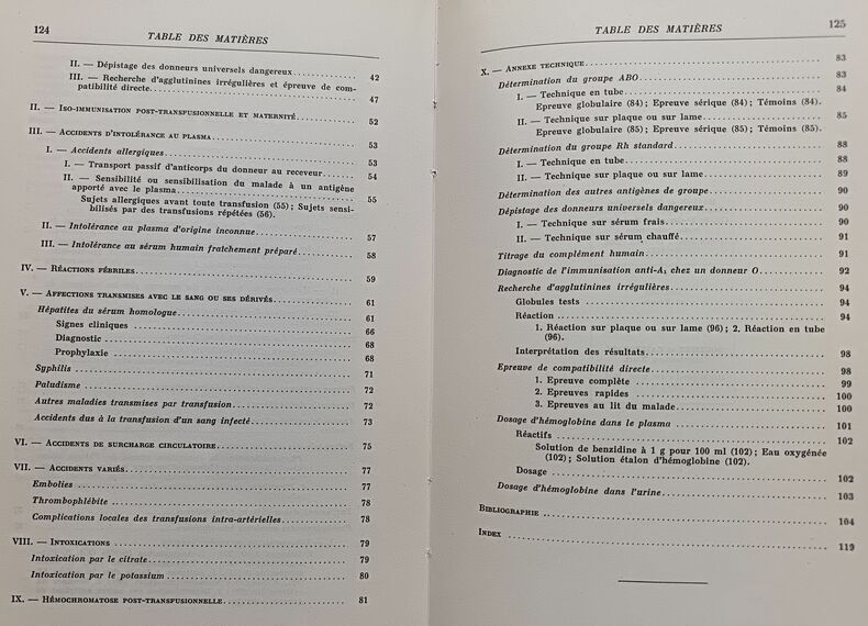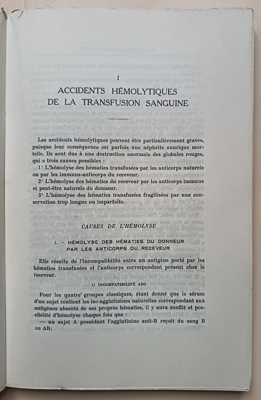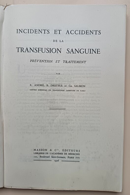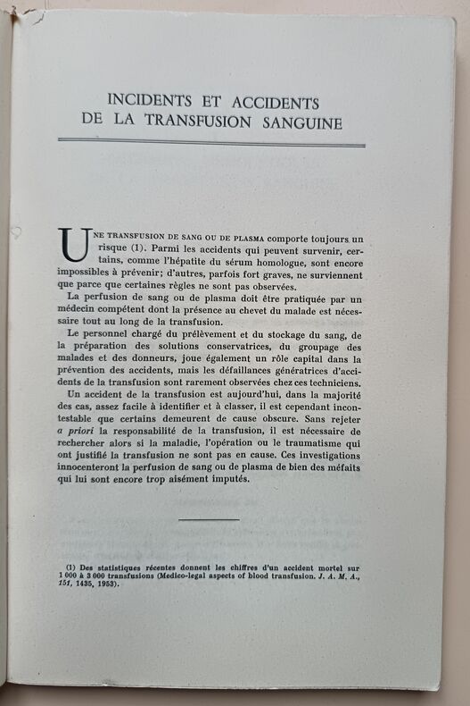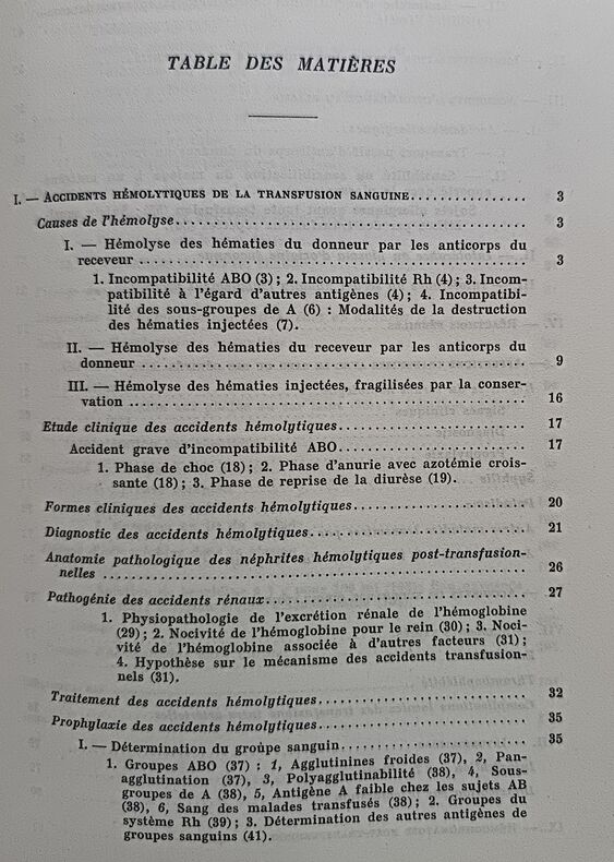 Sommaire : causes de l'hémoluse - etude clinique des accidents hémolytiques - traitement des accidents hémolytiques - prophylaxie des accidents hémolytiques - réactions fébriles - accidents de surcharge circulatoire - intoxications - accidents variés - accidents d'intolérance au plasma etc . Classification Dewey : 610-Sciences médicales. Médecine