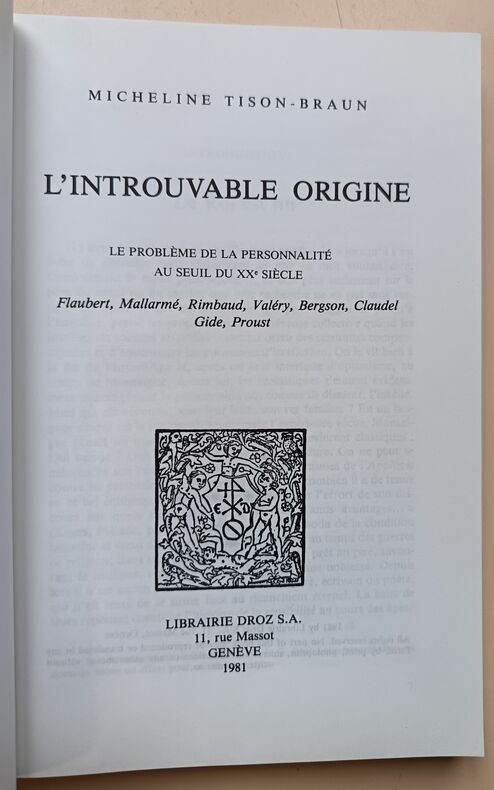Genève, Librairie Droz S. A. 1981, 230x155mm, 257pages, broché. Bel exemplaire.