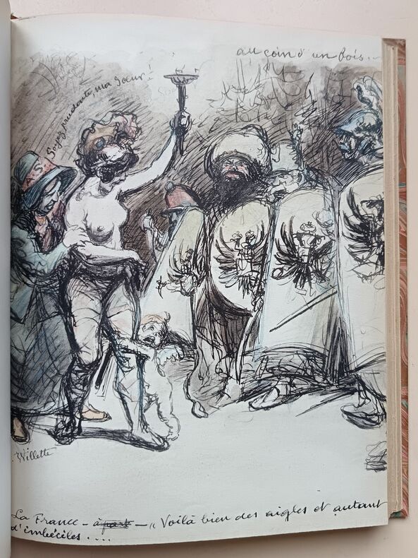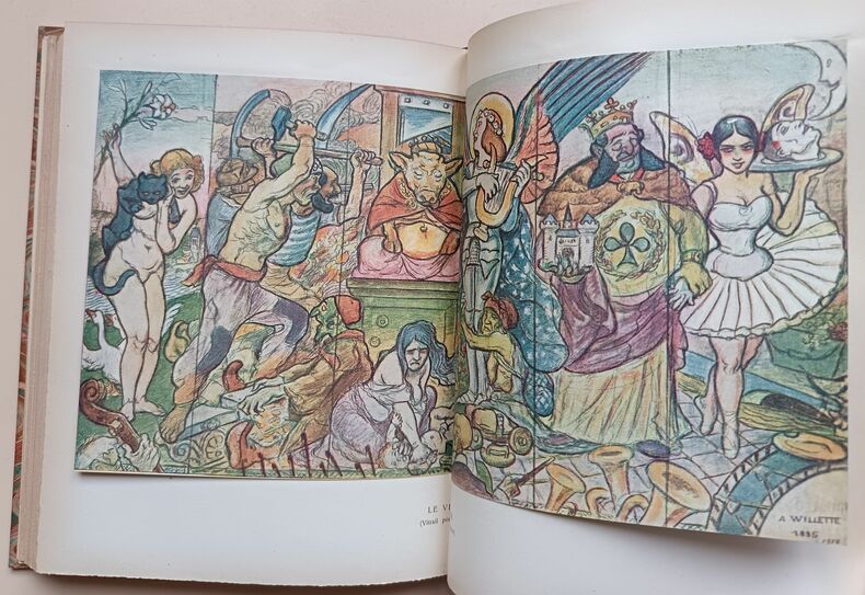 Paris, H. Floury, 1919 Un volume relié (19,7x26,4 cm) de 183 pp. Édition avec portrait en couleurs en frontispice, de nombreuses illustrations hors et dans le texte, 16 planches en n/b (dont 2 à double-page) et 15 planches en couleurs (dont 1 à double-page) par A. Willette.Reliure demi-maroquin vert, dos à nerfs orné de deux feuilles et d'une tête de bouffon, titre doré.Superbe exemplaire dans une très belle reliure.