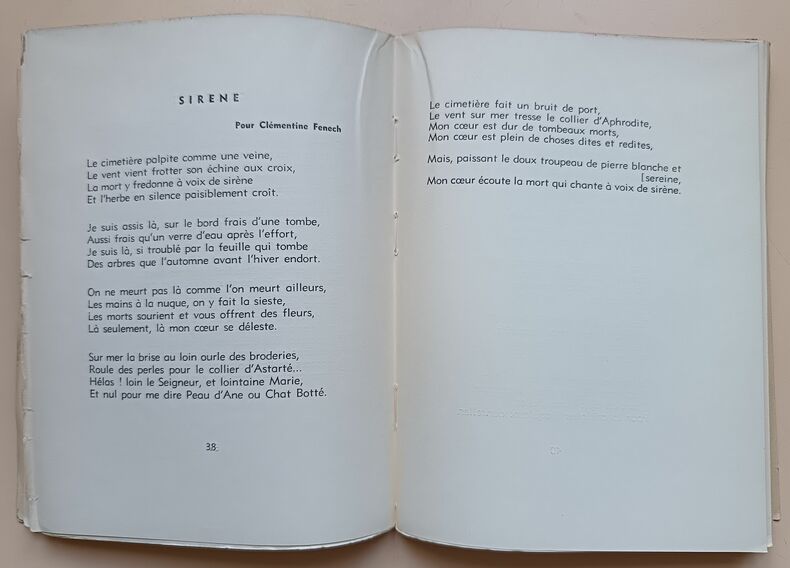 Ed. Edmond Charlot, Coll. "Méditerranéennes", 1937, 60pp, In-12. Bon état. Couverture souple illustrée éditeur. (Légères traces d'usure, couverture légèrement brunie, dos qui commence à se décoller). Intérieur très propre et très frais. (Pages non coupées). Un des 306 exemplaires sur Alfa, celui-ci : N°137. Édition originale.