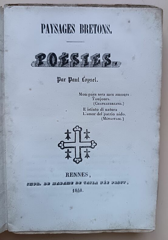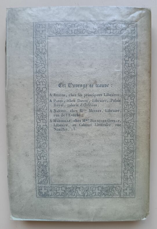 1840 RENNES, Impr. de Mme de Caila (1840) -In-12 - Broché - couverture tyachée - 210 pages - Envoi manuscrit au recteur de la Chapelle-des-Fougeretz - RARE - Envoi rappide et soigné