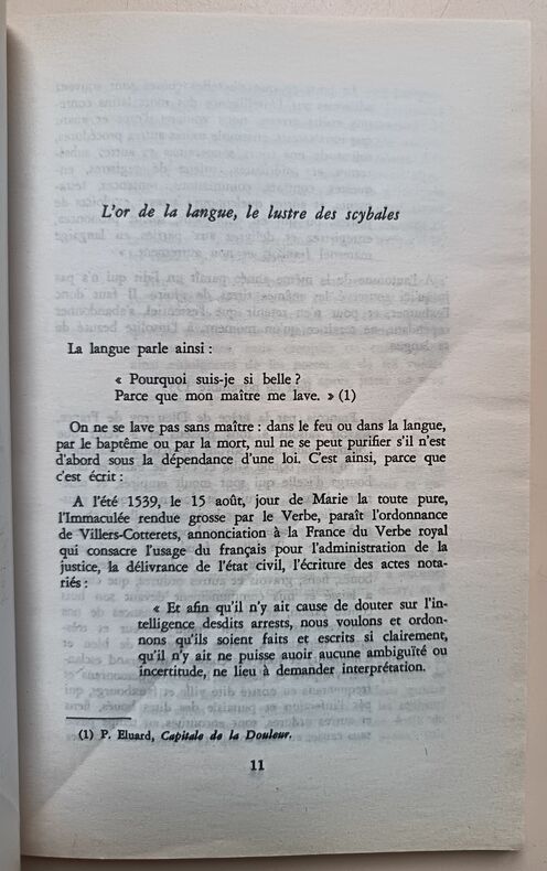 Ed. Christian Bourgois, Coll. "Choix-Essais", 1993, 119pp, In-12. Bon état. Couverture souple éditeur. (Couverture défraîchie, pliure sur le premier plat, coin du second plat corné). Intérieur frais et propre. (Contour des pages brunis, petite pliure sur les pages). Sans annotations ni phrases/illustrations soulignées. Voir photos.