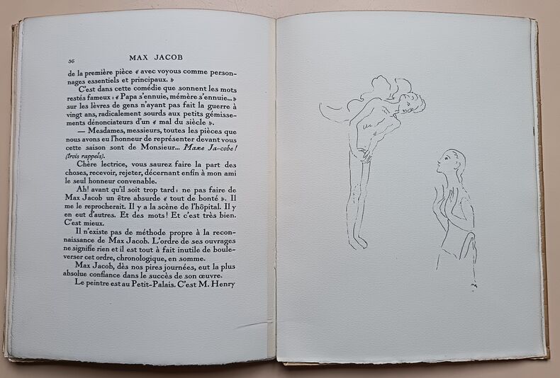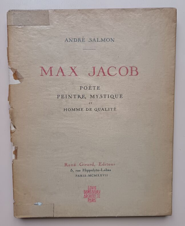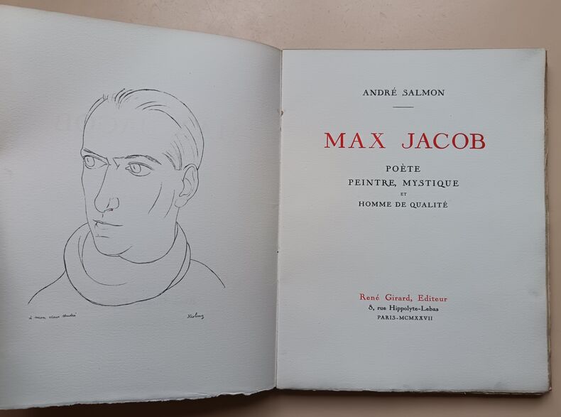 Edition originale de cette belle étude sur Max Jacob, hommage de Salmon à son ami. Portrait de l'auteur par Kisling en frontispice. Hors texte, 9 dessins de Max Jacob. Tirage à 525 exemplaires numérotés. Un des 475 sur vélin d'Arches à la forme. Belle typographie. Bel exemplaire Très bon exemplaire 0