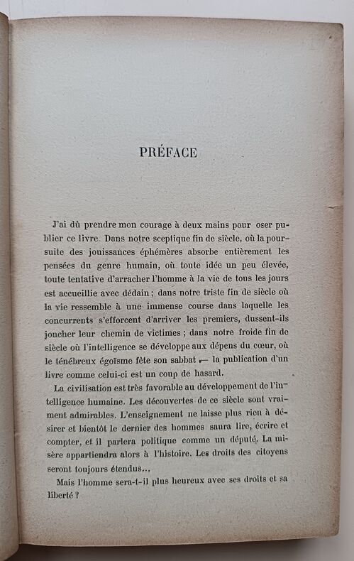 Ed. Stock, 1899, 327pp, in-12. Bon état. Reliure demi-cuir, dos à 5 nerfs. (Dos légèrement frotté). Intérieur très propre et assez frais. (Papier très bruni). Sans annotations ni phrases/illustrations soulignées. Voir photos. Rare ouvrage.