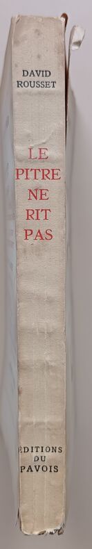 Paris Editions du Pavois 1948 1 vol. Broché in-12, broché, 263 pp., 8 planches en fac-similé hors-texte. Edition originale de ce recueil de textes puisés dans les archives secrètes du Troisième Reich. Exemplaire du service de presse avec un envoi de l'auteur : "A Georges Bataille - bien amicalement, cette brève introduction à une connaissance [mot illisible] de l'Etat possesseur de la société, David Rousset". Rousseurs à la couverture.