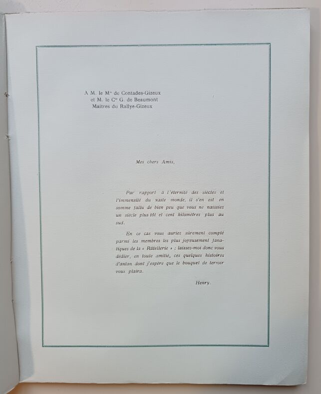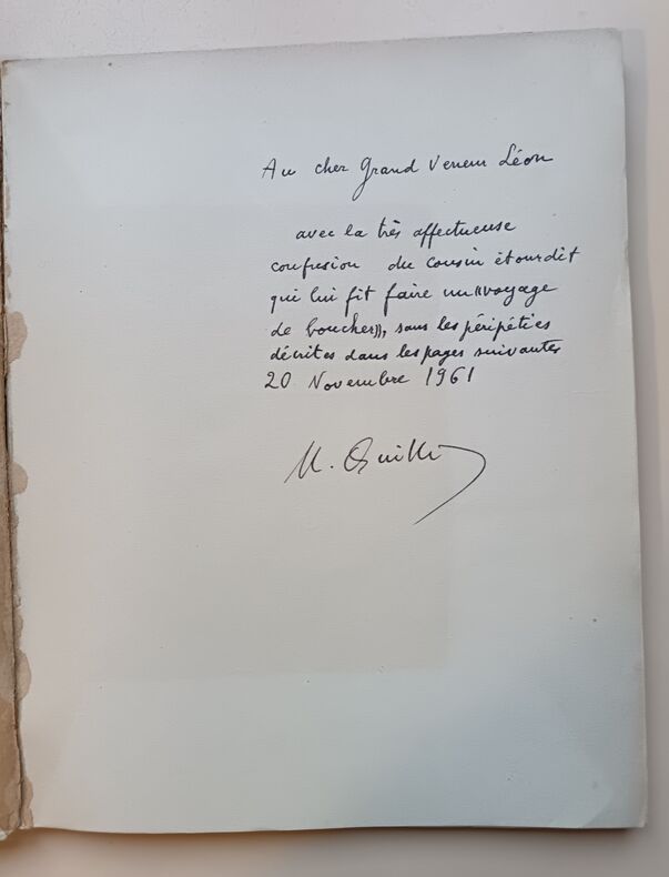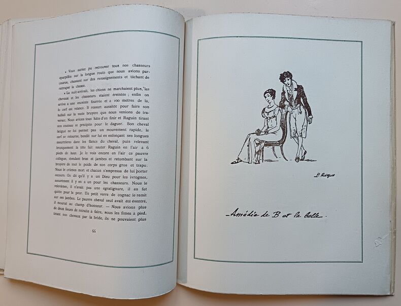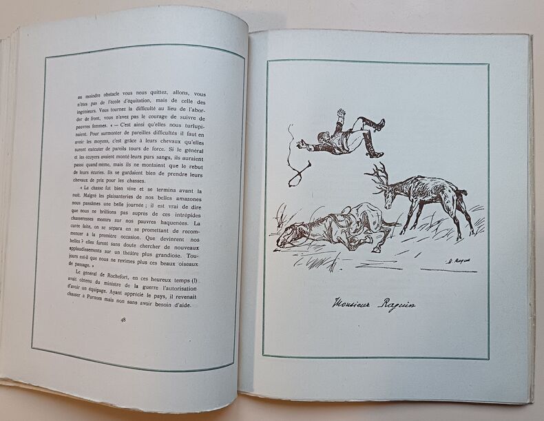 Ed. orig. illustrée par Paul ROQUE de la couverture et de 17 dessins hors-texte. Tirage à 370 ex. sur Japon Muller num., ici le n° 313. Envoi autographe de l'auteur à Mme Pierre Kachlin (le nom du destinataire reste lisible bien que passé au feutre bleu).(Pierre Mouchon, supplément à la bibliographie de Thiébaud sur la Chasse, p. 1120).