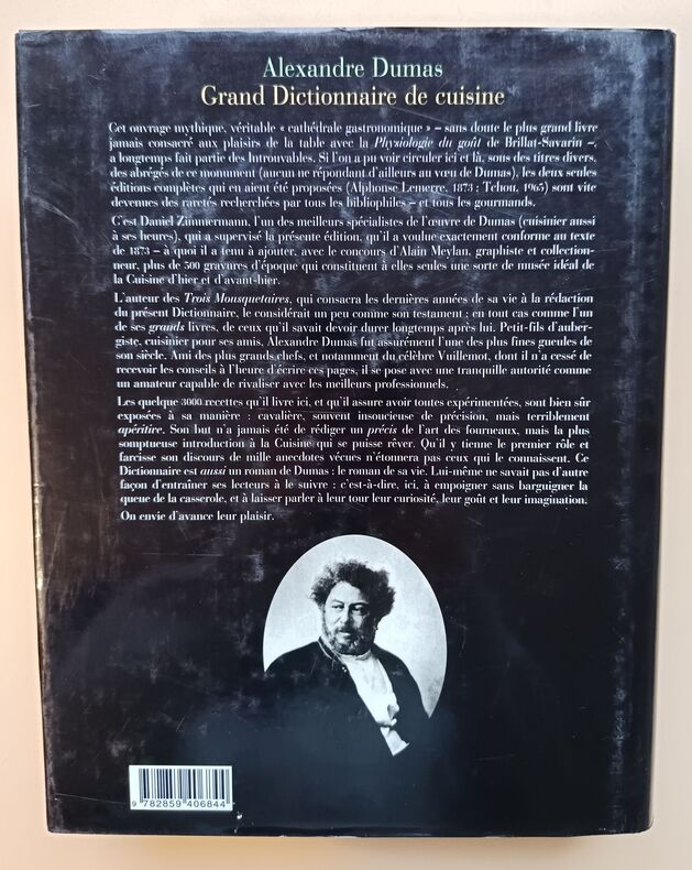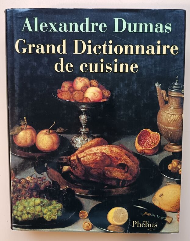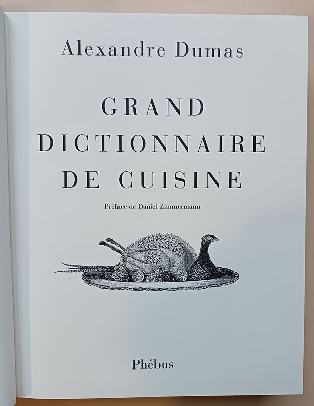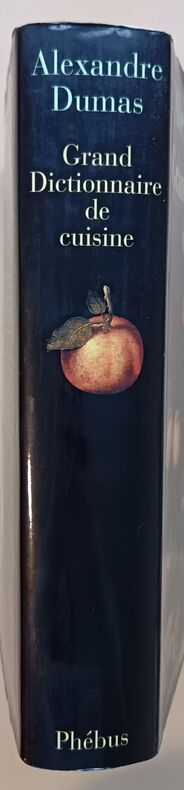 Paris, éd. Alphonse Lemerre, 1873, EDITION ORIGINALE, très fort pt. in-4, cartonnage pleine percaline verte foncé, guirlande à frois sur la première de couv., auteur et titre dorés sur la première de couv. et sur le dos lisse éd., VI - (4) - 1156 pp., 24 pp. d'annexe, portrait en noir de l'auteur en frontispice, 1 portrait en noir pleine page de D.-J. Vuillemot, bandeaux, culs-de-lampe et lettrines, menus, non rogné, LE GRAND DICTIONNAIRE DE CUISINE d'Alexandre Dumas. Son dernier écrit et son plus RARE. Nous présentons ce "monument culinaire" en édition originale de 1873 ! Une Très Grande RARETE. Très bon état de la reliure de l'éditeur avec restauration par une professionnelle; quelques rousseurs éparses surtout en début de l'ouvrage et sur les tranches