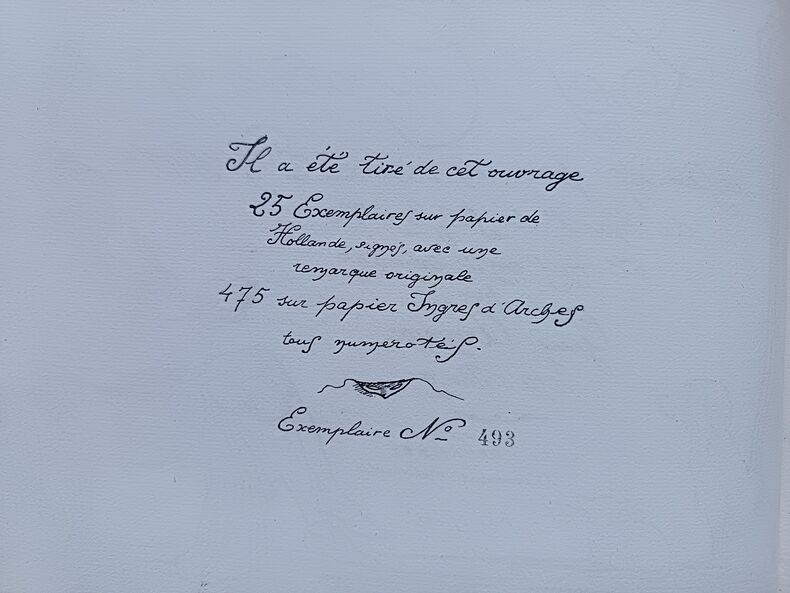 Ed. Chez Devambez, Paris, non daté (1925), non paginé, In-4 (format à l'italienne). Bon état. Reliure éditeur, cartonnage bradel recouvert d'un tissu fleuri, vignette de titre contrecollée sur le plat. (Coins et coiffes émoussés, mors intérieur fendu, reliure assez fragile). Intérieur très frais et très propre. Ex libris en page de garde, sinon, Sans annotations ni phrases/illustrations soulignées. Voir photos. Ouvrage tiré à seulement 500 exemplaires, celui-ci, un des 475 exemplaires sur Ingres d'Arches (Exemplaire N°493)