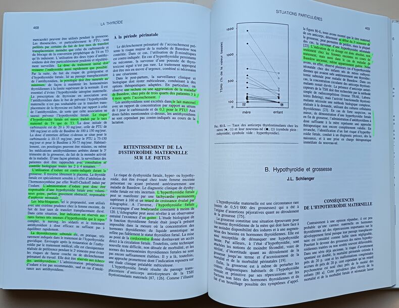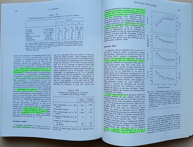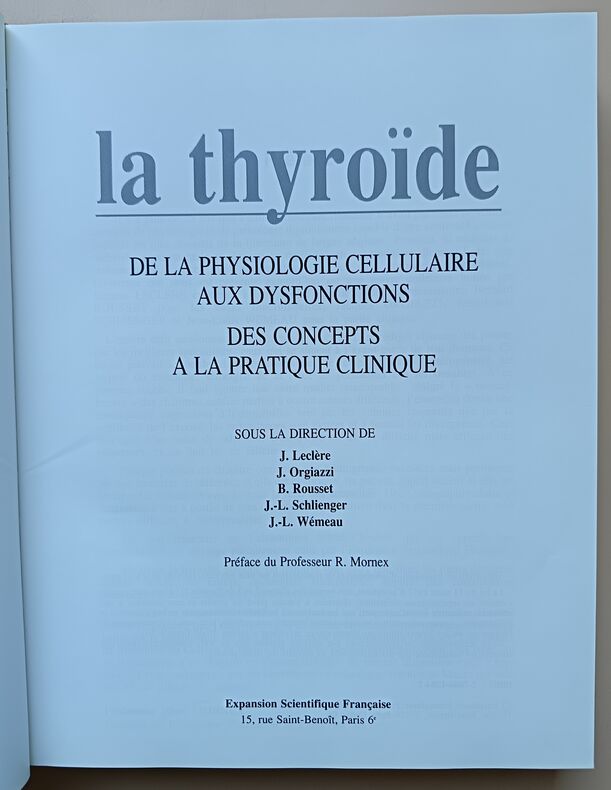 Ed: Expansion Scientifique Française, 1992, 573pp, In-8. Très bon état. Couverture rigide illustrée éditeur. (Légères traces d'usage). Intérieur impeccable. Le chapitre "Thyroïde et grossesse" contient plusieurs pages soulignées au stabilo, tout le reste est sans annotations ni phrases/illustrations soulignées. Voir photos. Rare ouvrage.