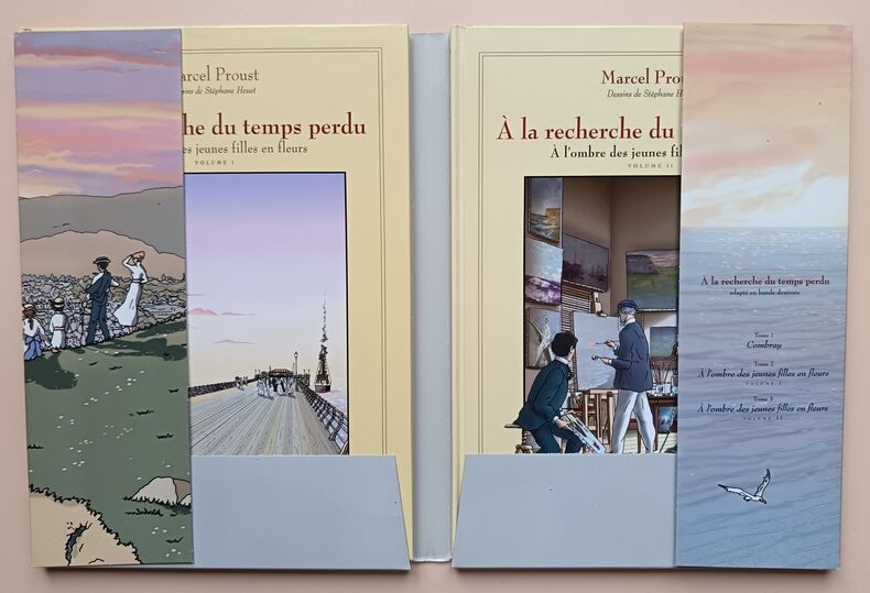 Ed. Delcourt, 2002, 47pp (x2), in-Folio. Bon état. Couvertures rigides sous coffret illustré éditeur. (Seul le coffret présente des traces d’usure : bords et coins légèrement frottés, petite déchirure sur le haut du premier plat). Livres en excellent état. Intérieurs impeccables. Sans annotations ni phrases/illustrations soulignées. Voir photos. Rare ensemble sous coffret.