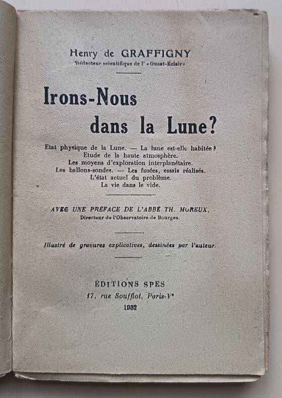 Éditions Spes, collection Savoir n°5, 1 volume cartonné de format 16,5 x 11 cm, 188 pages, préface de l'Abbé Moreux, dessins de l'Auteur, bon état. Frais de port en supplément.