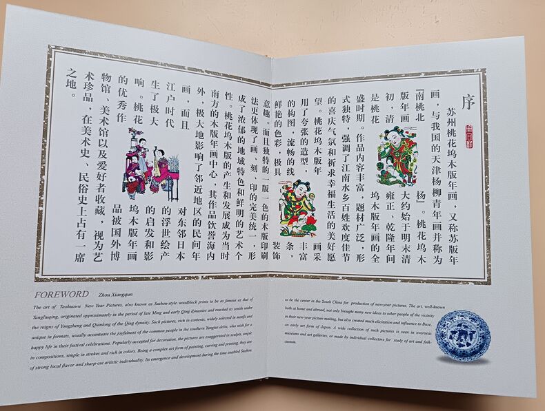 China Intercontinental Press, Information Office of Suzhou Municipal People's Government 2000 In-4. Cartonnage illustré en couleurs, 23 pp., 10 bois en couleurs sous pochettes. Bel exemplaire.