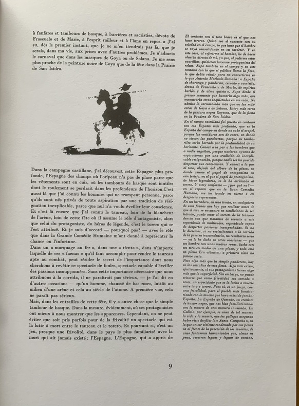 Texte de Luis Miguel Dominguin et une étude de Georges BrudailleSous étui cartonné blanc, jauni aux extrémités. Cartonnage de l'éditeur pleine toile blanche illustrée en couleurs. Intérieur très frais. Avec de nombreux dessins en couleurs et en noir et blanc et à pleine page.
