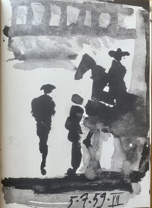 First edition, being one of the 150 numbered copies signed by Picasso, of one of the artist’s greatest books of the post-war period, magnificently printed under Picasso’s supervision and dedicated to his lifelong fascination with bullfighting. Luis Miguel Dominguín, legendary bullfighter whose exploits were described by Hemingway in “The Dangerous Summer”, wote the lengthy introduction. A monumental artist’s book, “Toros y Toreros” stands as both an artistic summary of Picasso’s lifelong fascination with the spectacle of the bullfight and a deeply personal reflection of the people and passions that surrounded him in his final decades. The work is based on Picasso’s sketchbooks from 1959, a period of graphic experimentation at Vallauris, and reflects his deep personal engagement with the bullfighting world and its participants. His old companion Manuel Pallares would visit for long tertulia-style conversations in Catalan, while his wife Jacqueline was more interested in the artist’s publisher, Gustav Gili, and his Andalusian friend, the celebrated bullfighter Luis Miguel Dominguin:“Picasso had always enjoyed having Spanish or Spanish-speaking friends around. Manuel Pallarés, a Catalan who had been a friend since he was fourteen, would come and spend two weeks in a nearby hotel. In true tertulia style the two old cronies would gossip for hours in Catalan about the minutiae of life in turn-of-the-century Barcelona or the high sierra. Jacqueline found all this very tedious. She far preferred the company of the artist’s Catalan publisher, Gustav Gili, or his fellow Andalusian the celebrated bullfighter, Luis Miguel Dominguin. Although Picasso loved to discuss bullfighting with Dominguin, he was taken not so much with his professional prowess - “his real arena is the Place Vendôme.” He told Cocteau: “One thinks he’s not like the others, but he’s exactly the same” - as with his personal allure. Picasso had a short man’s envy of people who were tall, and Dominguin was the inspiration for the slender elegant torero in most of the later bullfight scenes. In his lively text Toros y Toreros, Dominguin likens his relationship with Picasso to the great Pedro Romero’s with Goya. He sees Picasso as a bull and quotes the popular Andalusian poet Rafael Alberti’s paean to him: “You the only matador in Picassian pink and gold - with Pablo Ruiz Picasso as the bull! And me as picador.”” (Richardson, A Life of Picasso, p. 8) “The main involvement [in bullfighting] for Picasso was not so much with the parade and the skill of the participants but with the ancient ceremony of the precarious triumph of man over beast … The man, his obedient ally the horse, and the bull were all victims of an inextricable cycle of life and death.’ (Roland Penrose, Beauty and the Monster, p.170.) The present work unites Picasso’s art with his lifelong fascination for the drama, ritua,l and symbolism of the bullfight, uniting his genius as an artist with one of the most strong passions of his Spanish identity.