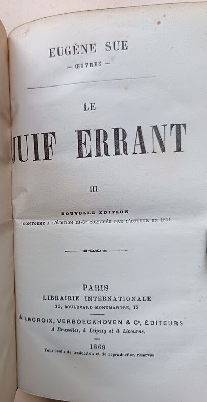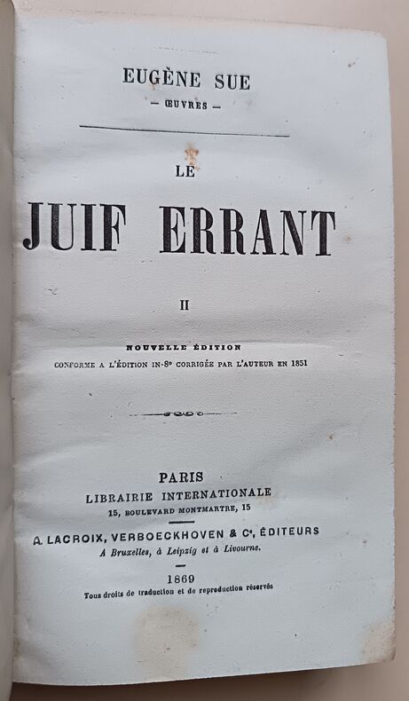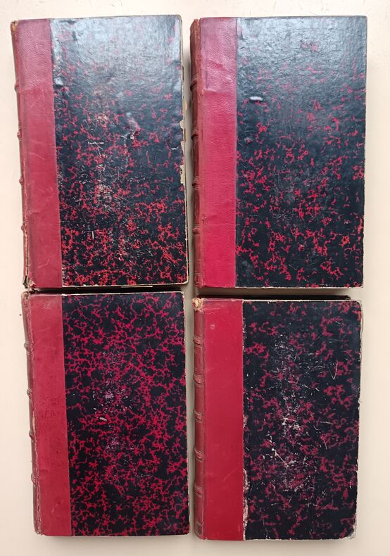 Librairie Internationale / A.Lacroix, Verboeckhoven & Cie, éditeurs, 1869, 359-348-322-324pp, In-12. Bon état. Reliures demi cuir marbrées. (Traces d'usure, coins légèrement émoussés, coiffes frottées, mors fendus sur les trois premiers tomes). Intérieurs frais et propres. (Légères rousseurs éparses). Tome 4 non numéroté. Feuillet de la page de titre du dernier tome détaché. Sans annotations ni phrases/illustrations soulignées. Voir photos.