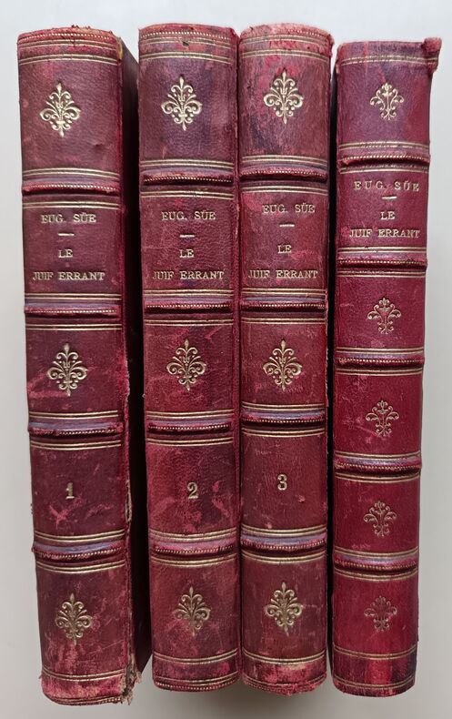Edition illustrée par Gavarni, 4 vol. in-4 reliure de l'époque demi-chagrin bordeaux, dos à 5 nerfs, Paulin, Paris, 1845, 2 ff., 331 pp., 2 ff., 332 pp. ; 2 ff., 327 pp. ; 2 ff., 352 pp. avec vignettes, carte dépliante et 80 planches hors texte sur 83 (23, 20, 20, 17) d'après Gavarni, K. Girardet et Pauquet