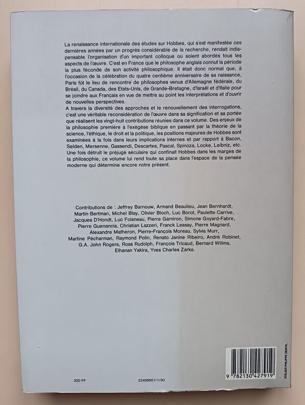 Ed. Presses Universitaires de France, Coll. "Léviathan", 1990, 418pp, In-8. Bon état. Couverture souple à rabats illustrée éditeur. (Second plat insolé). Une dizaine de pages sont annotées au stylo plume, sinon, intérieur impeccable.