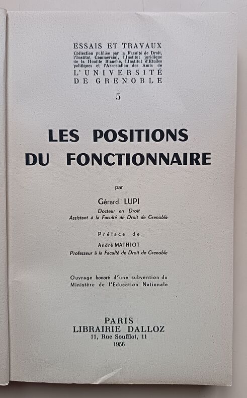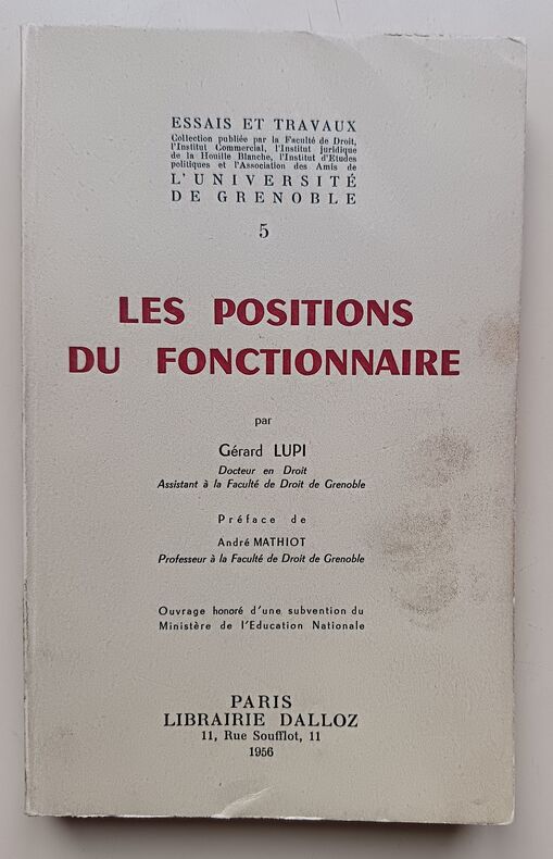 Librairie Dalloz, Coll. "Essais et travaux" n°5, 1956, 271pp, In-8. Bon état. Couverture souple éditeur. (Légères salissures sur les couvertures). Intérieur très propre et frais. (Papier bruni). Sans annotations ni phrases/illustrations soulignées. Voir photos.
