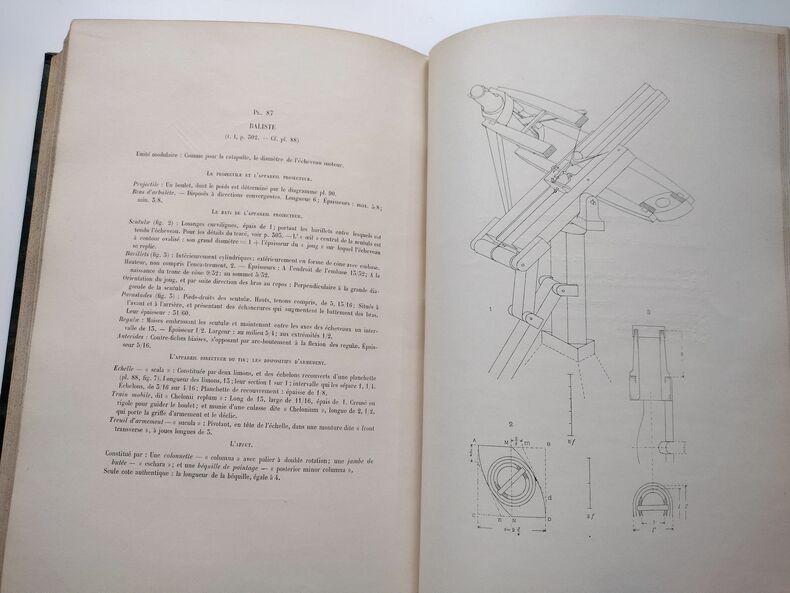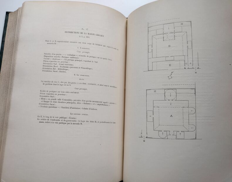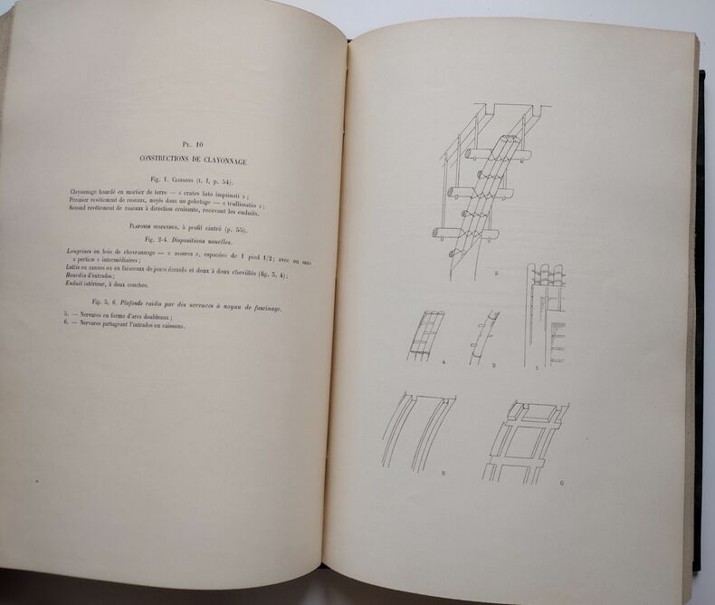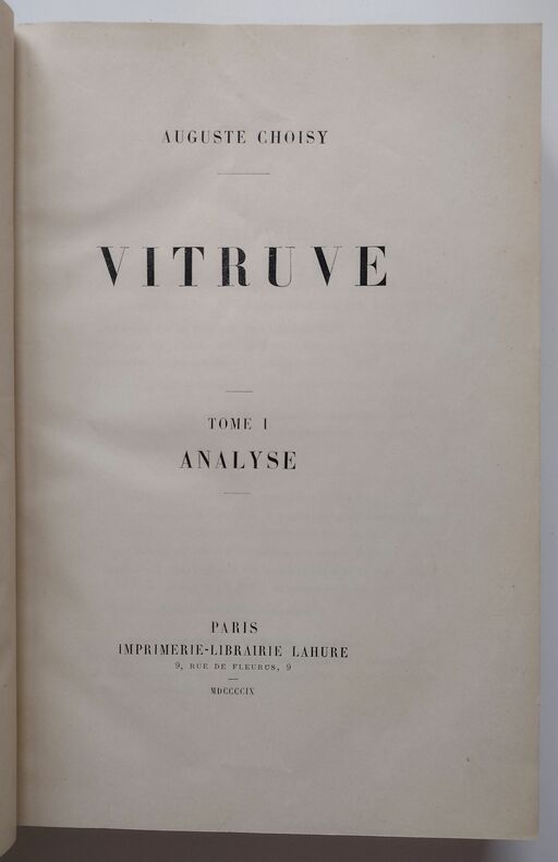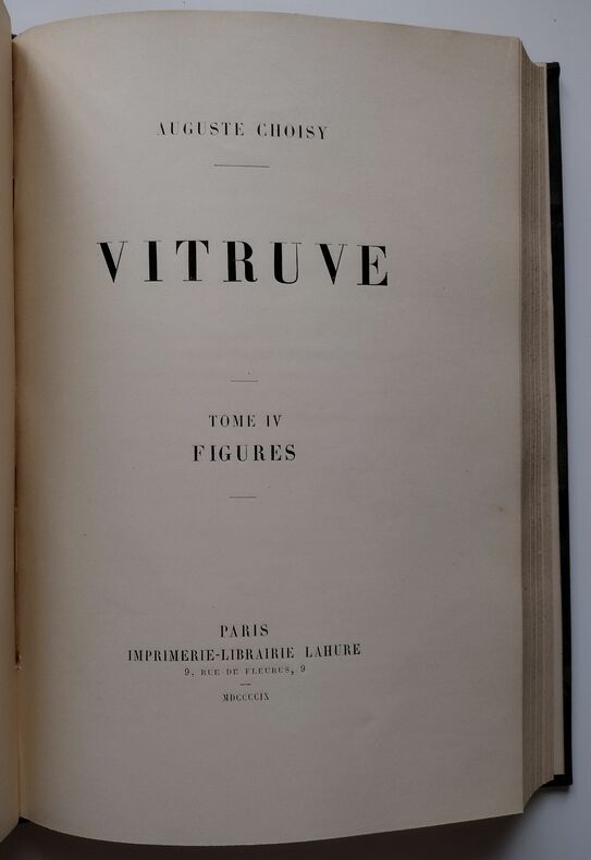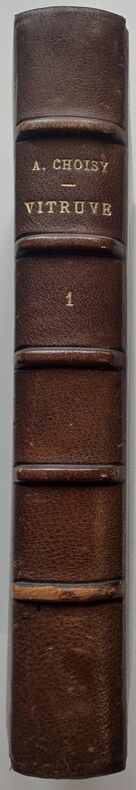 Ed. Imprimerie-librairie Lahure, 1909, 386pp. plus 95 planches hors-texte, In-4. Un volume renfermant les tomes 1 et 4 de l’œuvre de Choisy sur Vitruve. Bon état, reliure demi-cuir avec dos à cinq nerfs, titrage et tomaison dorés, plats cartonnés illustrés (nerfs frottés, coiffes très légèrement arasées, légères traces d'usures sur le dos et les plats, coins frottés : voir photos), intérieur très frais (légères rousseurs concentrées sur les premières et dernières pages, à signaler de très rares pages avec un texte souligné, sinon sans annotations ni plans soulignés : voir photos). Bon exemplaire, bien conservé, solidement relié.