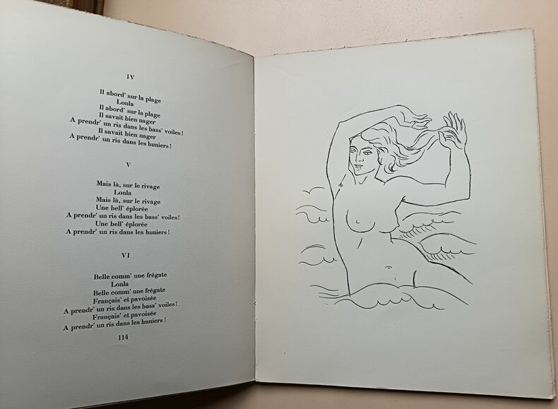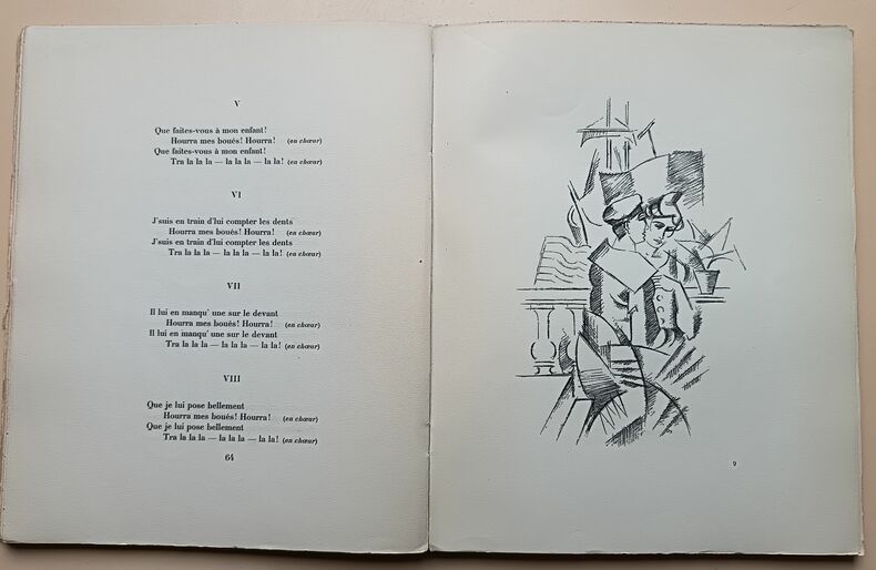 Chansons de bord, harmonisées par Charles Bredon et illustrées de 14 dessins originaux d'André Lhote Paris, Editions EOS, 1927 In-4°, reliure en tissus décoré de roses , 144 pages, paroles et musique.Illustré de 14 dessins originaux d'André Lhote.L'un des 1500 exemplaires numérotés sur Vélin Navarre