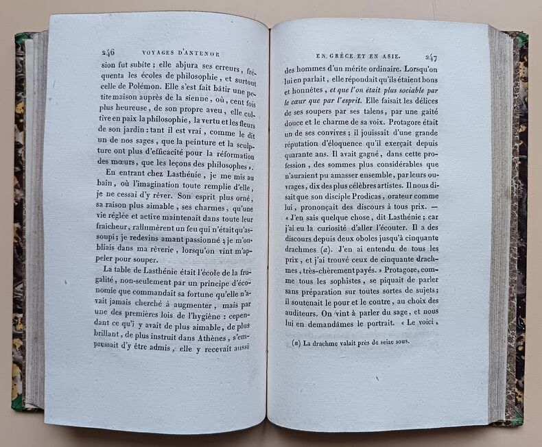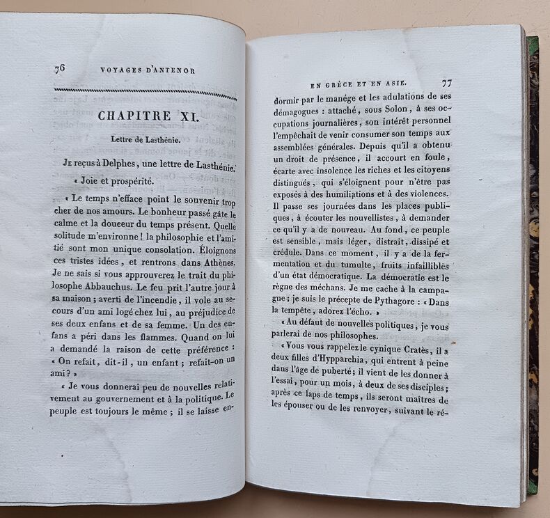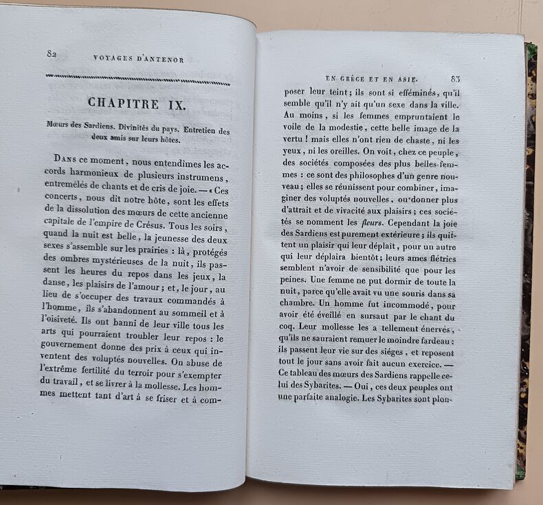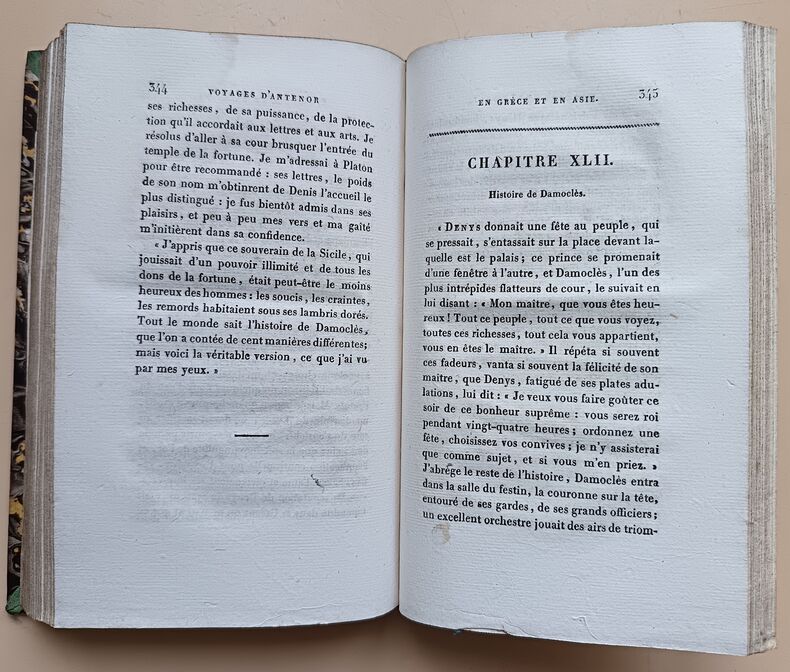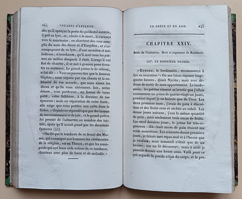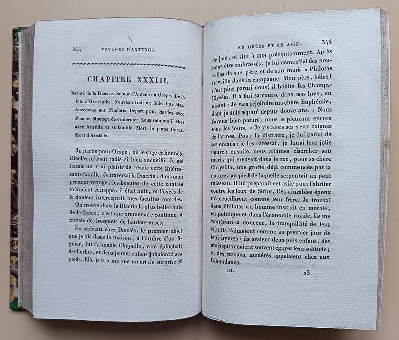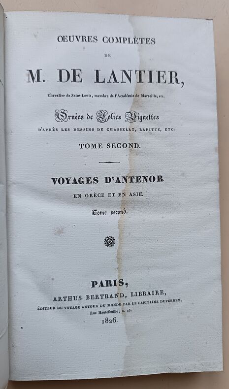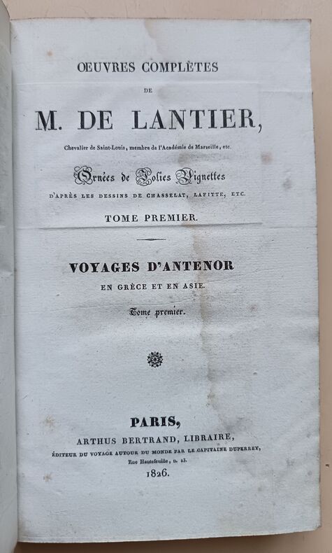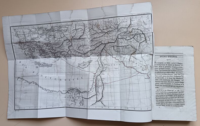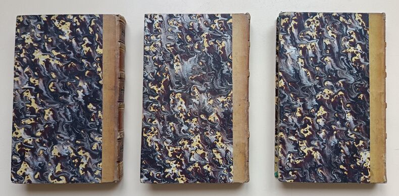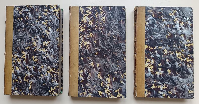 Ed. Arthus Bertrand, imprimerie Lebel, 1826, T1 411pp. T2 419pp. T3 388pp. In-8. Un frontispice gravé en regard du titre de chaque vol. d'après les dessins de Chasselat, Lafitte, etc. et gravé sur cuivre par N. Courbe et une grande carte (43 x 29,5 cm) dépliante hors-texte au début du tome 1. Bon état, reliure cuir, dos à nerfs, titres dorés, quelques rousseurs et tâches d'humidité, intérieur très frais, belle édition complète.
