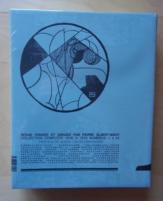 Facsimilé de la célèbre revue créée par Pierre Albert-Birot, publiée de janvier 1916 à décembre 1919, et qui compte 53 numéros répartis en 41 livraisons. Préface d'Arlette Albert-Birot. Textes et illustrations de Roger Allard, Guillaume Apollinaire, Louis Aragon, Giacomo Balla, André Breton, Blaise Cendrars, Henri Cliquennois, Jean Cocteau, Paul Dermée, Drieu La Rochelle, Ivan Goll, Roch Grey, Max Jacob, Henri Matisse, Francis Picabia, Pablo Picasso, Léon Pierre-Quint, Enrico Pamprolini, Pierre Reverdy, André Salmon, Gino, Severini, Philippe Soupault, Igor Stravinsky, Léopold Survage, Ossip Zadkine. In fine: Programme des Mamelles de Tirésias d'Appolinaire. Bon état d’occasion