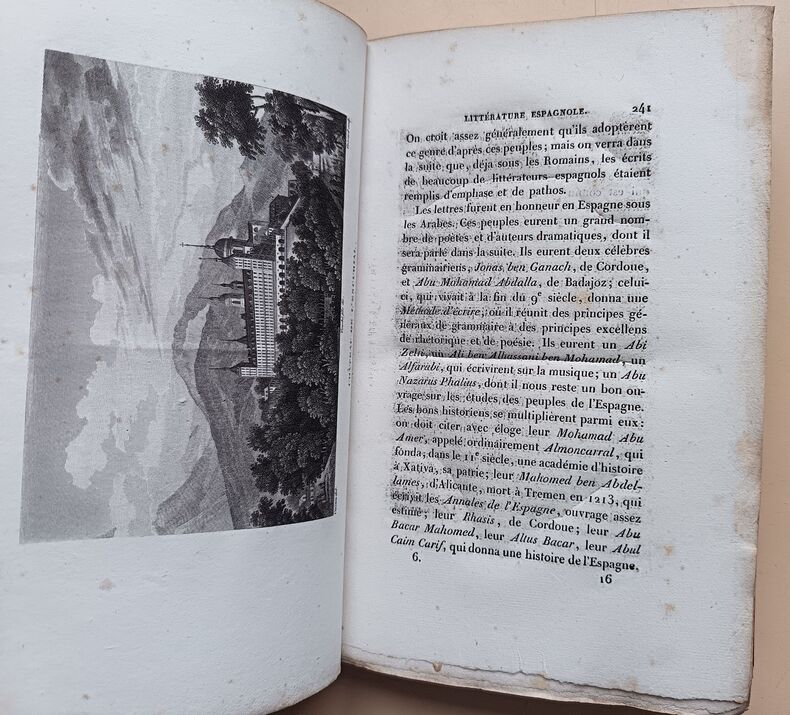 Paris A la Librairie Historique, et au Dépot Central de la Librairie 1834 in 8 (21,5x13,5) 6 volumes reliures demi veau clair granité de l'époque, dos lisses ornés d'un important décor doré, pieces de titre et de tomaison, tranches moirées, quelques rousseurs éparses. Tome 1: frontispice gravé, XXXIV, 494 et 4 pages, avec 1 planche gravée hors-texte sous serpente; Tome 2: frontispice gravé, 456 pages, et 1 planche gravée hors-texte sous serpente; Tome 3: frontispice gravé, 453 et 4 pages; Tome 4: frontispice gravé, 497 et 5 pages; Tome 5: frontispice gravé, 531 et 4 pages; Tome 6: frontispice gravé, 503 pages, et 1 planche gravée hors-texte sous serpente. Troisième édition revue, corrigée et considérablement augmentée. Edition la plus complète. Compet des 6 volumes de texte, et du volume d'atlas in 8 reliure demi basane fauve, dos lisse orné (page de titre, table et 41 cartes et plans, la planche 1bis manque). Superbe exemplaire, très finement relié à l'époque ( Photographies sur demande / We can send pictures of this book on simple request )