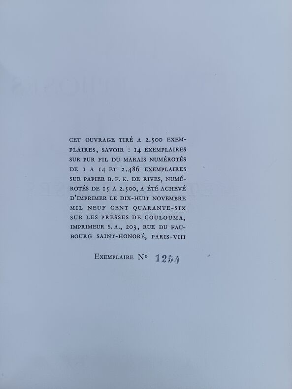 Ed. La Frégate, 1946, 123pp, In-4. Bon état. Couverture rempliée sous étui éditeur. (Etui et couverture brunis et insolés, mors légèrement fendu, pliures au dos). Intérieur impeccable, ouvrage bien conservé, pages bien blanches. Sans annotations ni phrases/illustrations soulignées. Voir photos. Exemplaire N°1254 sur papier B.F.K. de Rives.