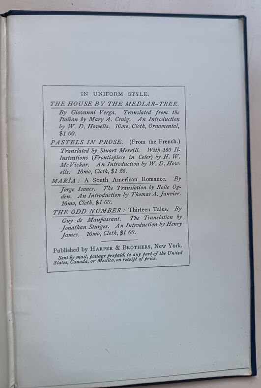 Ed. Harper & Brothers, 1890, 225pp, In-12. Très b on état. Couverture rigide éditeur. (Très légères traces d'usure aux coiffes et coins). Intérieur impeccable. Sans annotations ni phrases/illustrations soulignées. Voir photos.