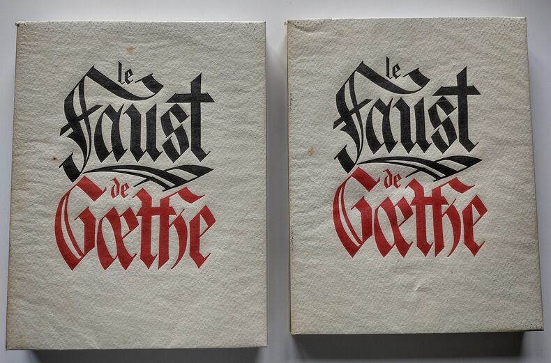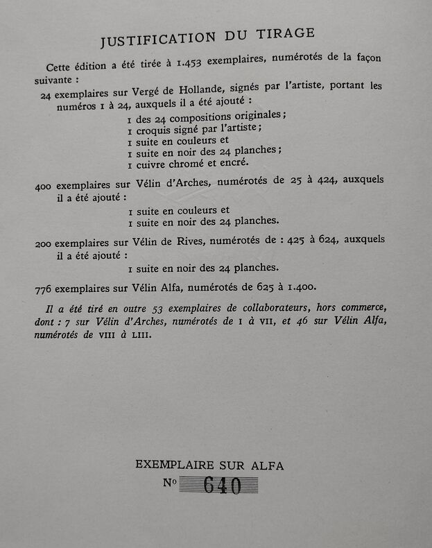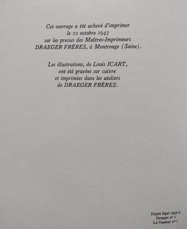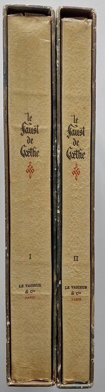 Ed. Le Vasseur & Cie, Paris, 1943, 248-165pp. In-8. Exemplaire n°640, un des 775 exemplaires sur Vélin d’Arches, numérotés de 625 à 1400. Bon état, beaux exemplaires vendus dans leurs coffrets éditeur (extrémités des coffrets légèrement abîmées, titre du deuxième coffret taché), couvertures rempliées illustrées éditeur (recouvertes par du papier cristal), intérieurs très propres (partiellement non coupé, sans annotations ni phrases/illustrations soulignées : voir photos).
