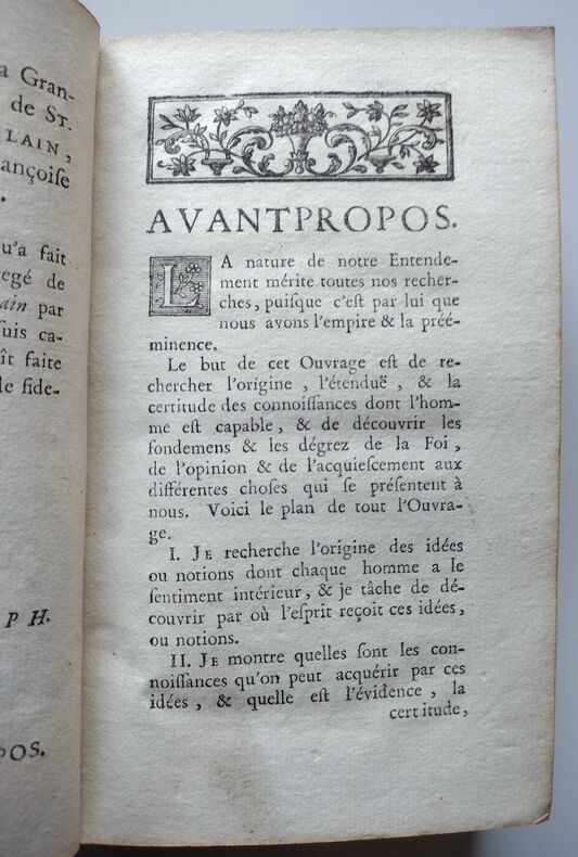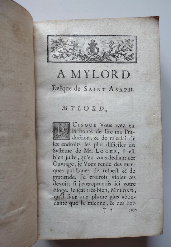 Ed. A Londres, chez Jean Nourse, 1746, XVI (dédicace, préface, avant-propos)-376 pages, 3 feuillets n. ch. (table des chapitres et des matières), In-12. Reliure plein veau marron clair tacheté, dos à 5 nerfs, caissons ornés et dorés, titrage doré, mors fendus, épidermures sur les plats, coins émoussés, tranches colorées rouge, intérieur très frais (avec signet, rares rousseurs, sinon sans annotations ni phrases soulignées). Exemplaire dans un état très correct au vu de son âge, solidement relié.