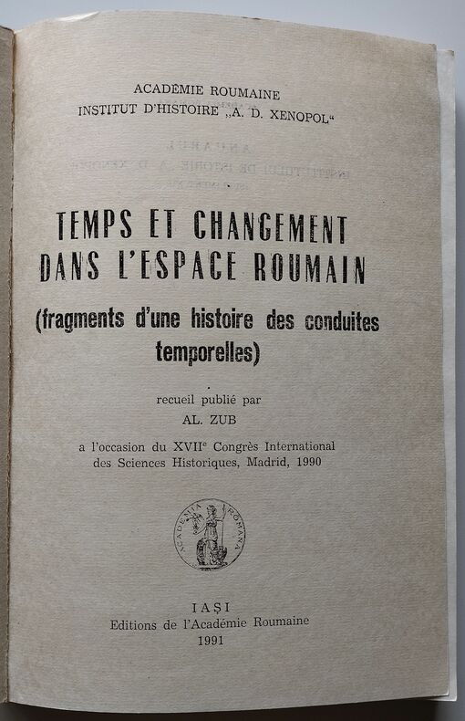 Editions de l’Académie Roumaine, 1991, 262pp, In-8. Bon état. Couverture cartonnée souple illustrée éditeur propre. (Manque sur la 4ème de couverture, un papier semble avoir été arraché. Coin supérieur gauche corné.) Intérieur très propre. Sans annotations ni phrases/illustrations soulignées. Voir photos. Recueil publié par Al. Zub à l’occasion du 18ème Congrès International des Sciences Historiques à Madrid en 1990. Certains textes sont en anglais. Très rare ouvrage.
