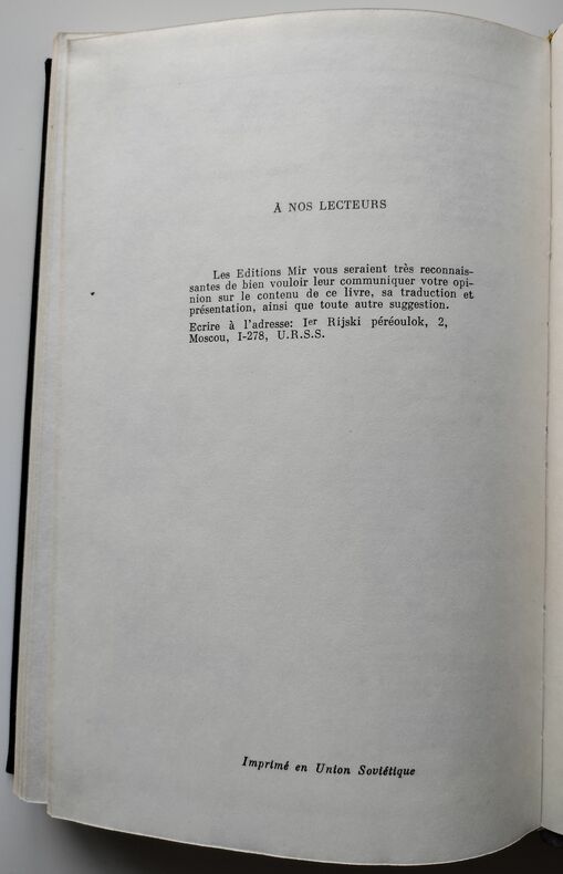 Ed. Mir, Moscou, 1982, 435pp. In-8. Deuxième édition traduite du russe par Djilali Embarek. Bon état. Couverture cartonnée noire rigide illustrée éditeur. Coiffes très légèrement frottées. Intérieur très frais et très propre (sans annotations ni phrases/illustrations soulignées). Bon exemplaire.