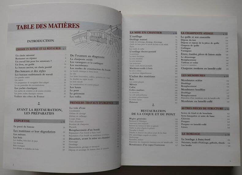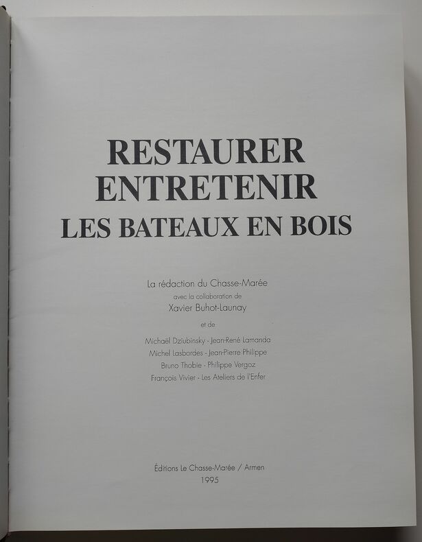 Editions le Chasse Marée, ArMen, 2000. Ouvrage illustré e photos en couleurs et de schémas. Ce livre présente toutes les techniques de réparation, restauration et entretien des bateaux en bois classiques à franc-bord ou clins, bois moulé, petites lattes, contre-plaqué, yachts, voiliers traditionnels, canots, dériveurs, ...
