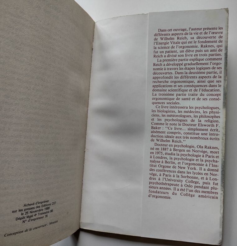 SOMMAIRE : Introduction biographique - Energie, caractère et orgasme - Reich et le paradis sexuel - La révolution sexuelle - La végétothérapie - L'orgonomie et la Découverte de Dieu - Récapitulation Classification Dewey : 840.091-XX ème siècle