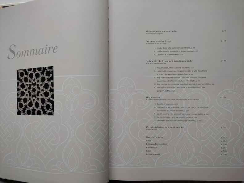 -Souks traditionnels et centre moderne: Espaces et pratiques à Alep (1939-1980) par M. Hreitani et J.C. David.-L'artisanat du textile à Alep: Survie ou dynamisme? par J. Cornand.-Les Qaysariyya de textile: un équipement dans la ville d'Alep par D. Hubert-Savonnerie traditionnelle à Alep par T. Grandin.-Note sur un recueil ancien de recettes médicinales par F. Sanagustin.Visite archéologique de la vieille cité d'Alep