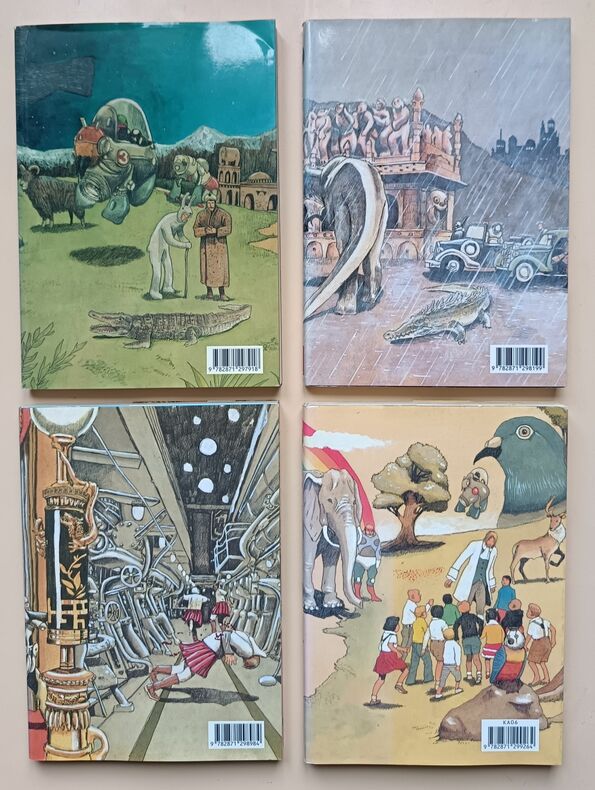 Ed. Kana, 2005-2006, 138-134-136-162pp, in-8. Très bon état. Couvertures souples sous leurs jaquettes illustrées éditeur. (Très légères traces d’usage). Intérieurs impeccables. Tampon « Lecture Jeunesse » en page de titre, sinon, sans annotations ni phrases/illustrations soulignées. Voir photos.