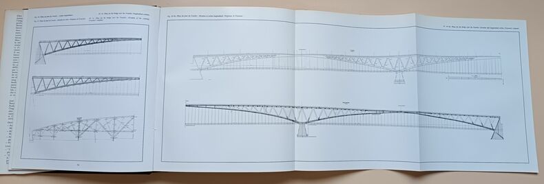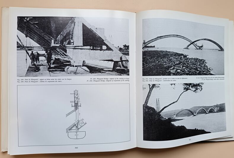 Paris, Presses de l'école nationale des Ponts et Chaussées, 2004, 24 x 37, 200 pages sous percaline éditeur et jaquette illustrée. Préface de Roger Lacroix. Iconographie noir & blanc et couleurs. Ouvrage publié à l'initiative de l'Association Eugène Freyssinet. "Discret inventeur, constructeur audacieux, son intuition extraordinaire du comportement du béton, confirmé récemment par l'analyse fine de la micro mécanique, a fait d'Eugène Freyssinet l'un des ingénieurs qui ont le plus marqué le monde de la construction pendant tout le XXe siècle. Dans une première partie de carrière, il pousse le béton jusqu'à ses limites de résistances dans les arcs des ponts qui volent de records en records. Puis, ayant compris comment s'affranchir des insuffisances du matériau béton, il invente la précontrainte qui fait de lui ce " matériau nouveau " qui " révolutionne l'art de bâtir ". La technique du béton précontraint a conquis le monde, elle a suvécu à son inventeur, mais elle a effacé l'homme, ses convictions, son message. Le faire connaître au travers de ses œuvres, nombreuses, et de ses écrits, rares, tel est le but de ce livre. Le lecteur y trouvera de nombreux exemples d'ouvrages qui démontrent à la fois l'extraordinaire potentiel du matériau béton et comment l'idée de précontrainte l'a aidé à supplanter l'acier, en particulier pour les ouvrages d'art. Mais, il y trouvera aussi un homme soucieux du rôle social de l'ingénieur, parfois poète devant un ouvrage réussi et toujours épris d'une éthique qui est peut-être son plus beau message."