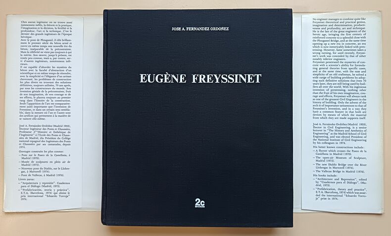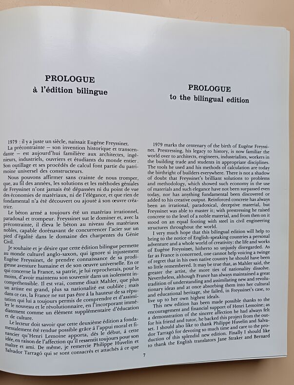 Ed. 2C Editions, 1979, 441pp. In-4. Nombreuses illustrations, planches dépliantes et archives de la famille Freyssinet. Bon état, sous sa jaquette illustrée éditeur (salie), reliure toilée noire avec titrage blanc sur le dos et plat supérieur, intérieur propre (pourtour des pages jaunies, sinon sans annotations ni phrases/illustrations soulignées). Bon exemplaire de cette première édition bilingue anglais-français de cet ouvrage devenu un classique.