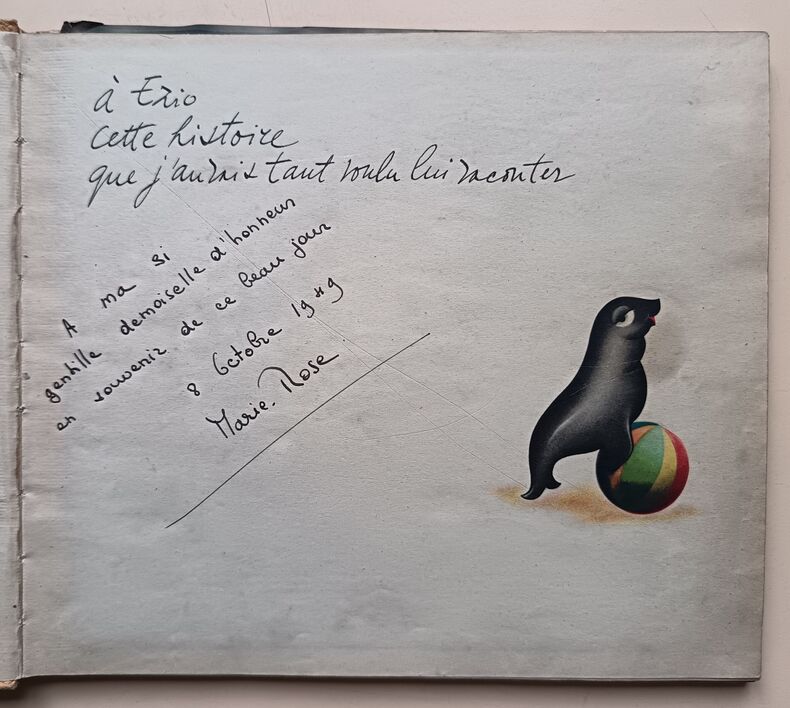 Prisma Paris, Prisma, 1948. In-8 oblong, relié cartonnage vert avec titre évidé laissant apparaître la tête du phoque de la première illustration, dos toilé vert. 94 pages. Adaptation française de Lo Duca. Coins émoussés au cartonnage, un feuillet détaché, légères rousseurs. Mention manuscrite au premier feuillet. Peu courant.