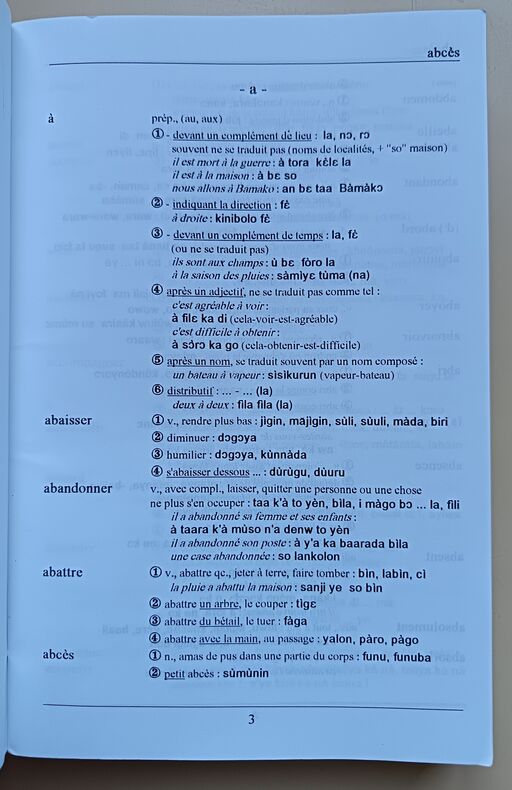 Dictionnaire Français - Bambara. (Bamako: Editions Donniya, 2006). [M.C.: Afrique noire, Mali, Bambara, linguistique, dictionnaire]