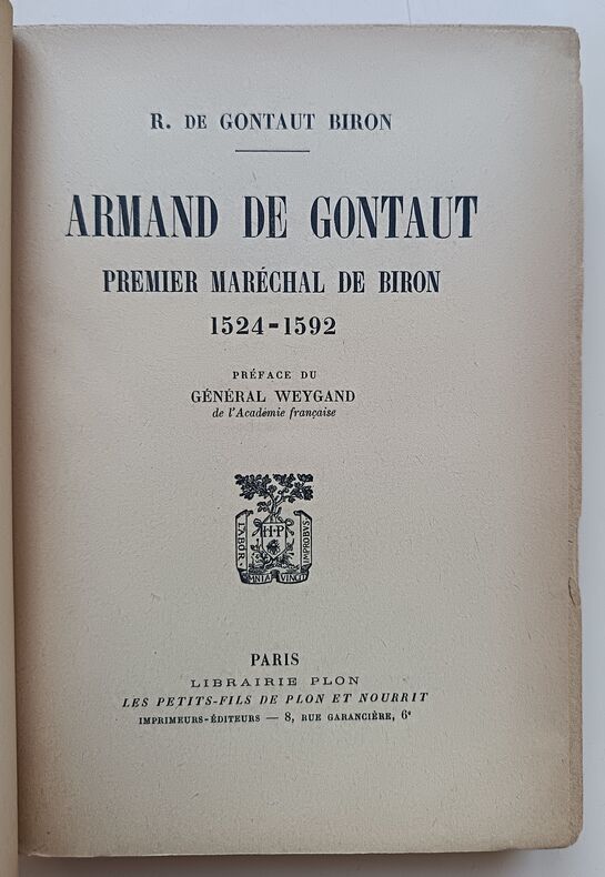 Ed. Plon, 1950, 360pp. In-8. Préface du Général Weygand. Bon état, couverture souple illustrée éditeur (présentant salissures & usures d'usage, très légers manques sur les coiffes : voir photos), intérieur très frais (papier jauni, partiellement non coupé, sans annotations ni phrases soulignées). Rare ouvrage.