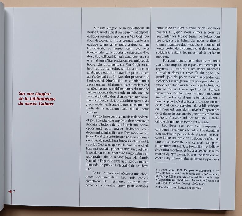Ed. Eitions Findakly/Musée Guimet, 2009, 173pp. In-8 (format à l'italienne). Bon état, couverture illustrée éditeur propre ( de très rares et légères traces de salissures), intérieur propre (sans annotations ni phrases soulignées). "Sélection d'une série de signatures de peintres japonais du XXe siècles contenues dans 3 livres d'or conservés par Paul Gachet dans la maison d'Auvers-sur-Oise où vécut le peintre Van Gogh, en son hommage. Elles éclairent une phase significative du cheminement artistique et culturel du Japon moderne. Elles invitent également à réfléchir sur la résonance de Van Gogh au Japon. Copyright Electre 2022"