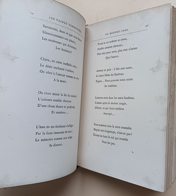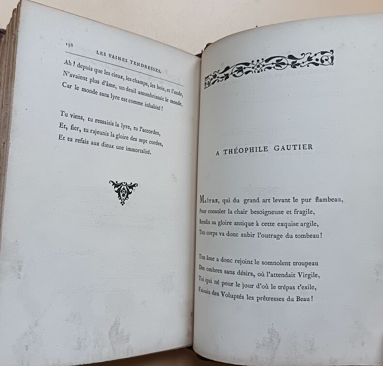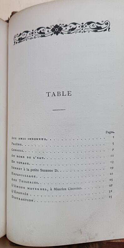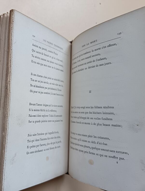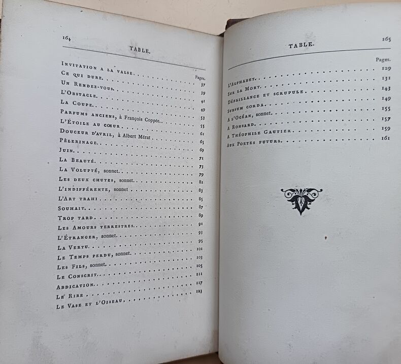 Demi-reliure cuir, dos à nerfs avec titre doré, 16X9 cm, sans date, 268 pages, librairie Alphonse Lemerre. De légères rousseurs, bon état.