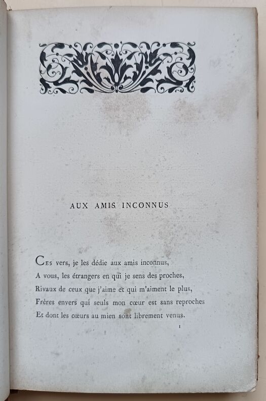 Ed. Alphonse Lemerre, 1875, 165pp, in-12. Bon état. Reliure demi cuir à coins. (Traces d’usure, coins et dos frottés). Intérieur frais. (Légères rousseurs éparses). Sans annotations ni phrases/illustrations soulignées. Voir photos. Édition originale.