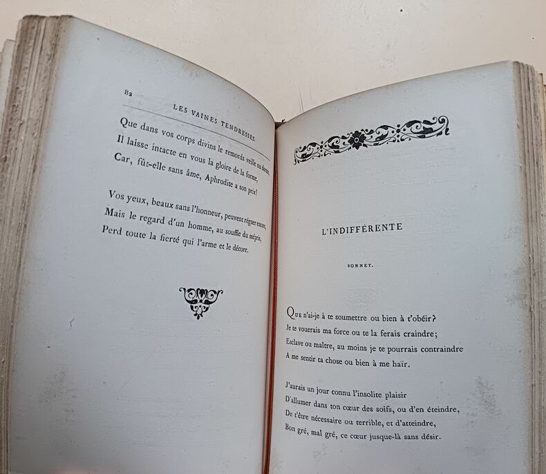 Paris Alphonse Lemerre, éditeur, sans date vers 1890, in/12, 268 pages, agréable reliure en demi-chagrin rouge, dos à nerfs, coins, doré sur tête.