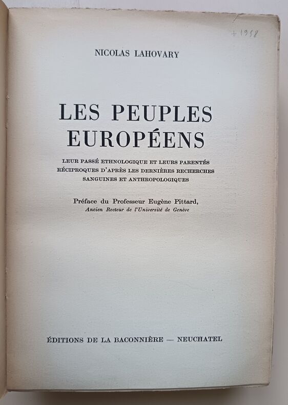 Préface du Professeur Eugène Pittard. Classification Dewey : 306-Anthropologie